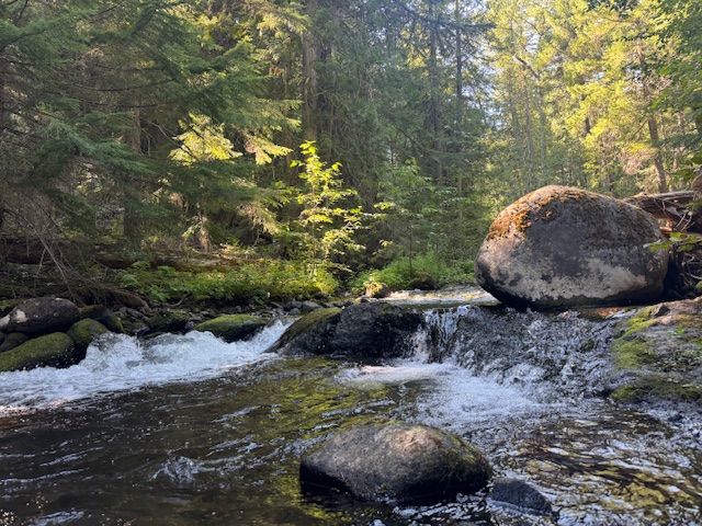 It’s never been easy to save Wilderness. To keep up our spirits and remember why it’s all worth it I believe in revitalizing our spirits often. Dip into the wilds near and far. Closing my eyes, I am back on the Badger Creek trail picking huckleberries until my fingers stain purple. I kneel to notice the low-down way of vanilla leaf and twinflower. Run my fingers over ferns like feathers and into icy spring water trickling by a tipped-up tree root of a great fallen fir. Spread my arms wide around the buttressed trunk of a western redcedar. Watch bats fluttering among larch, fir, and pines before I zip open my tent beside Gumjuwac Creek, flowing under great downed trees to a confluence with Badger Creek.